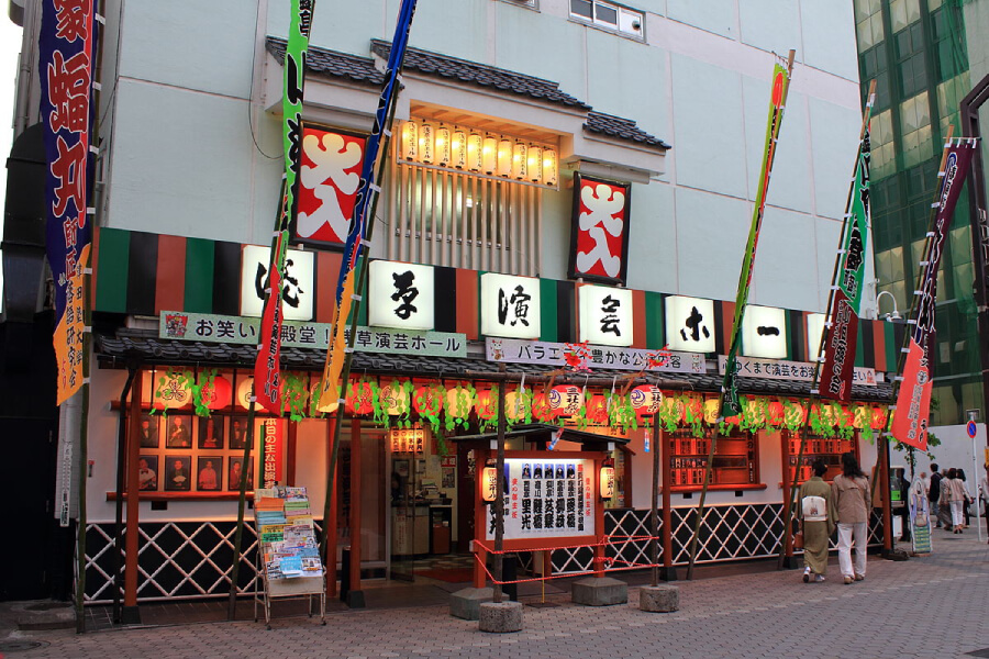 Nhà hát Asakusa Engei Hall được biết đến là một trong những địa điểm hàng đầu trong du lịch Nhật Bản, thậm chí có thể nói là tuyệt vời nhất, để thưởng thức Rakugo tại Tokyo. Nơi đây diễn ra các buổi biểu diễn Rakugo, Manzai (hài kịch độc thoại hai người), ảo thuật, trình diễn bắt chước giọng nói và tiểu phẩm kịch ngắn 365 ngày trong năm.