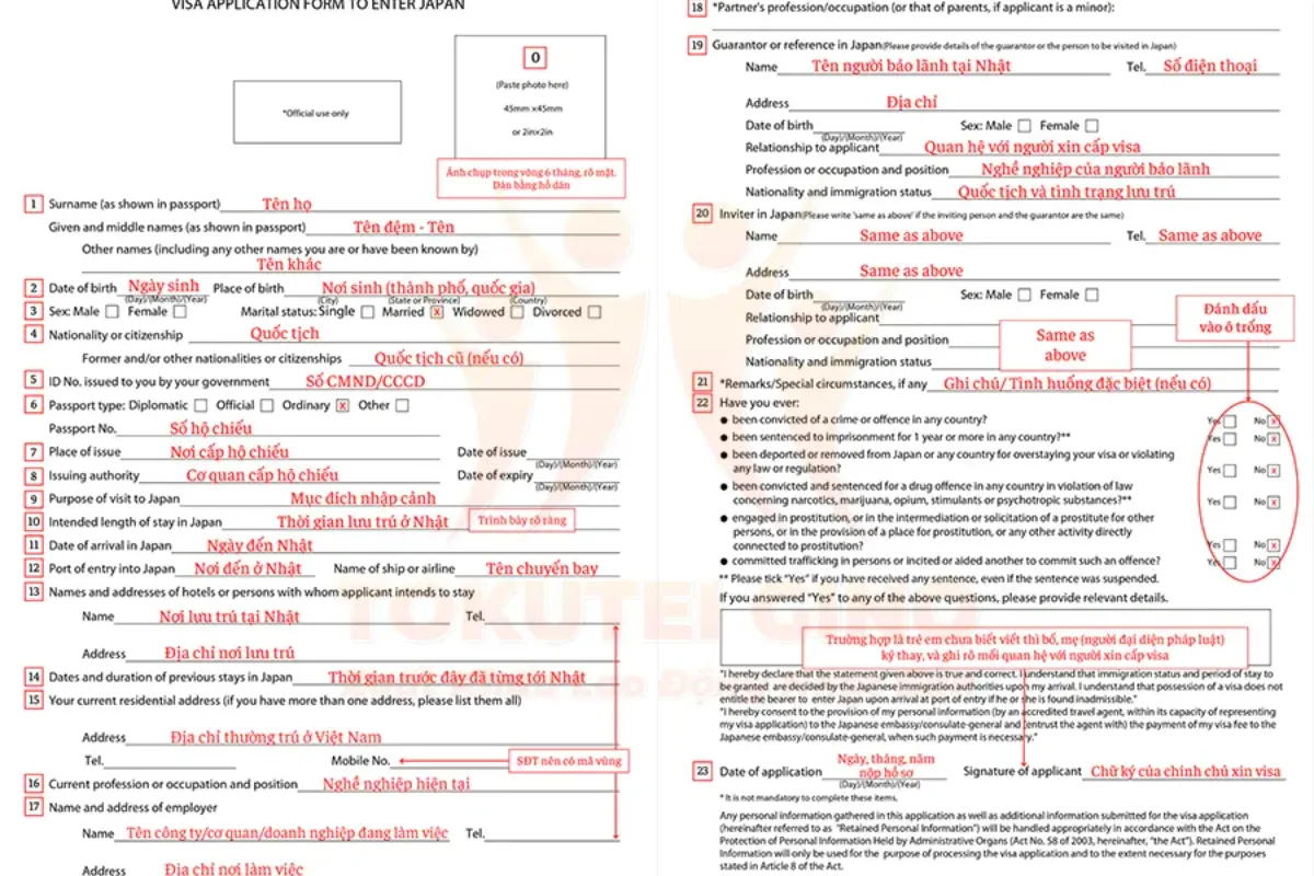 - Tờ khai xin visa Nhật Bản theo mẫu của Đại sứ quán